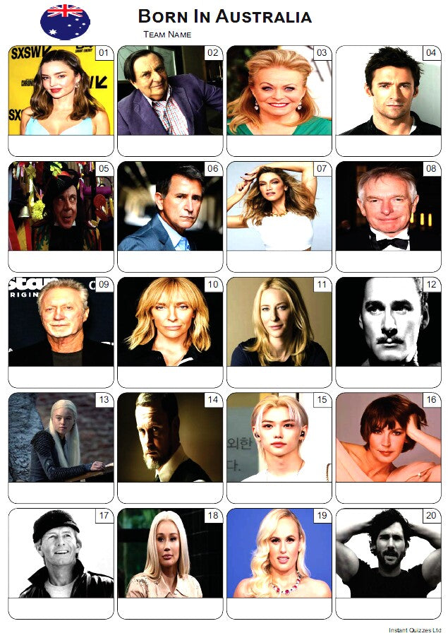 In this section you'll find quizzes about Australia and Australian people ideal for an Austalia Day quiz night.