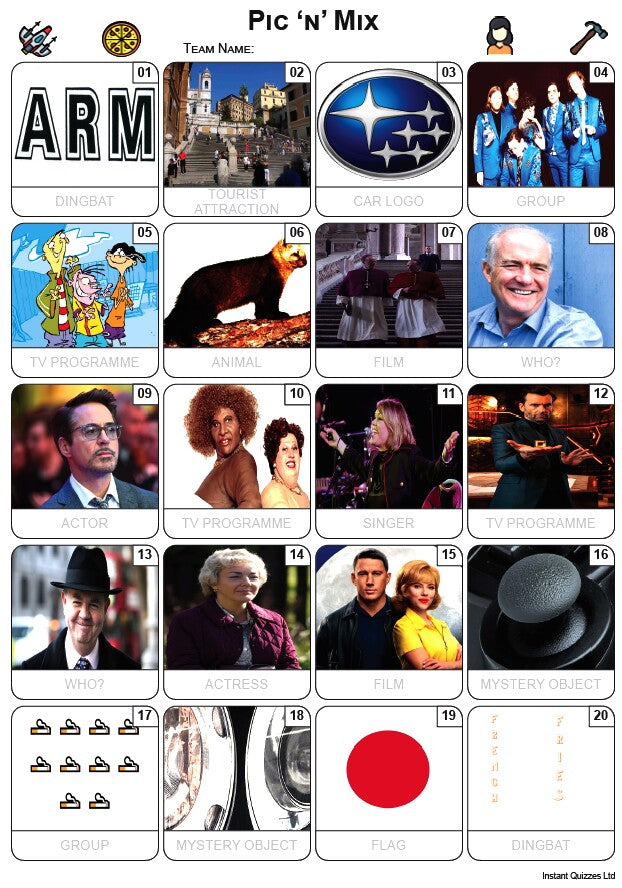 A picture quiz is an ideal round for the interval of your pub quiz night or as a way of testing quiz teams who have a wide general knowledge.