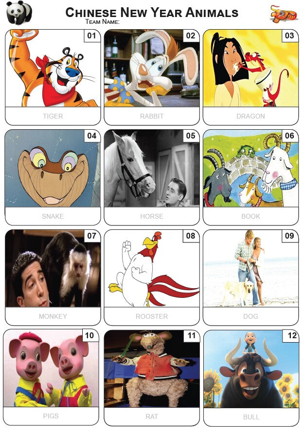 Chinese New Year - sets of picture quiz rounds featuring people, films, food, apes and monkeys and Chinese pic n mix - instant download 20 pictures cost £3 and 10 pictures cost £2