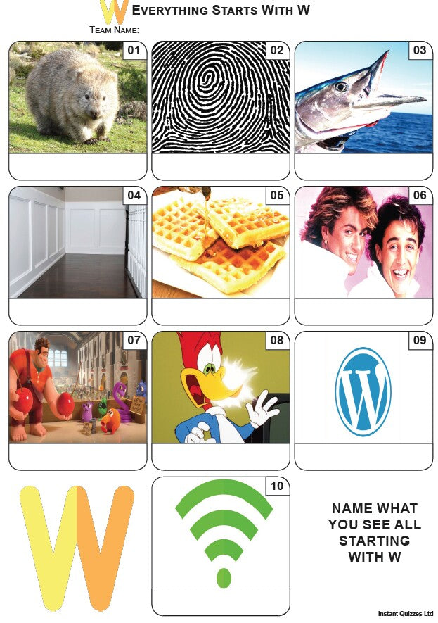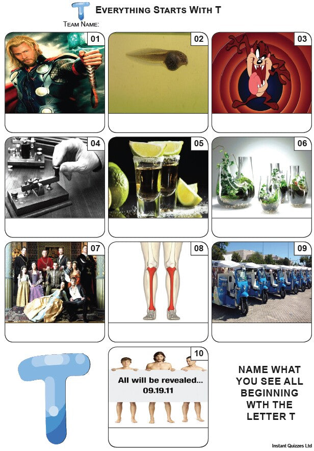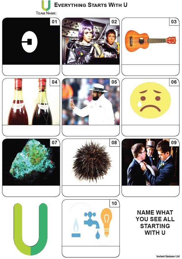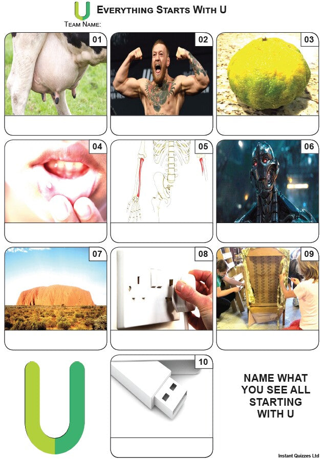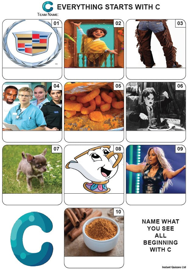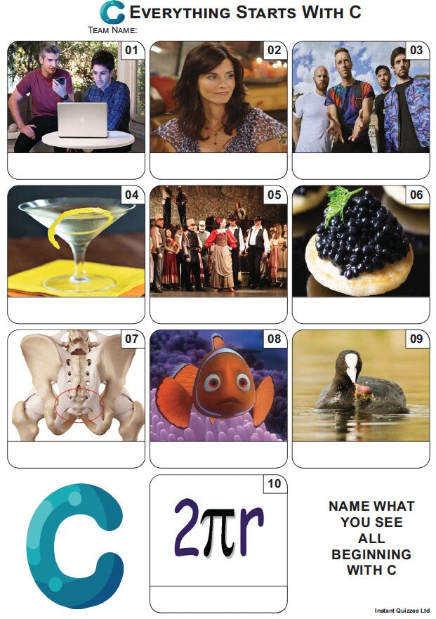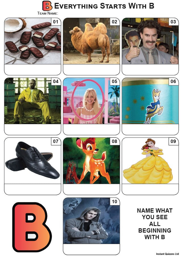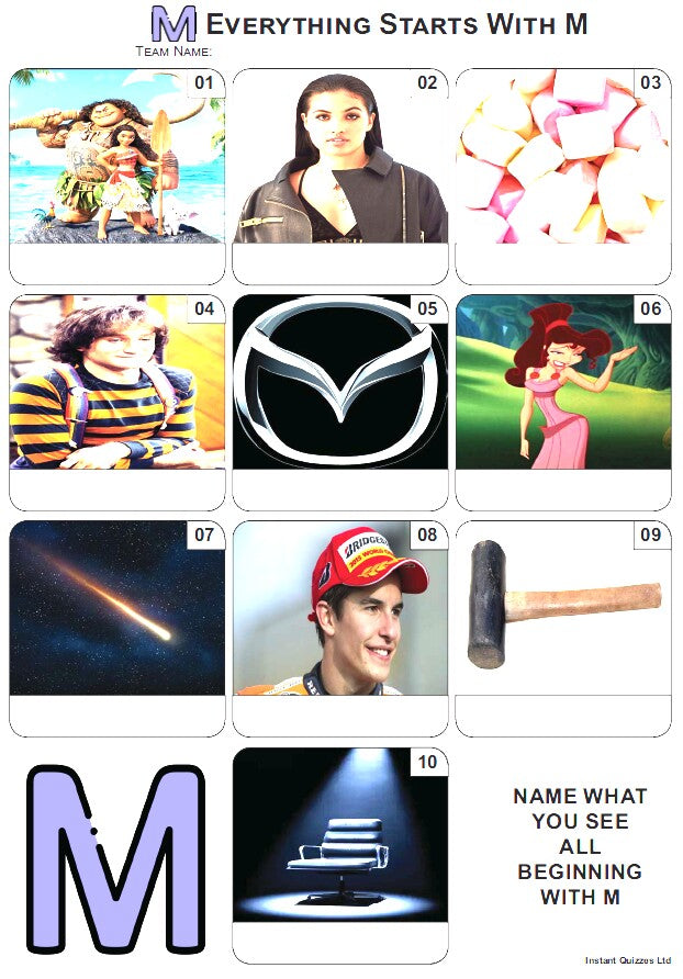 In this mixed bag picture quiz section, every answer begins with the same letter so just pick the letter of the quiz you require and off you go!