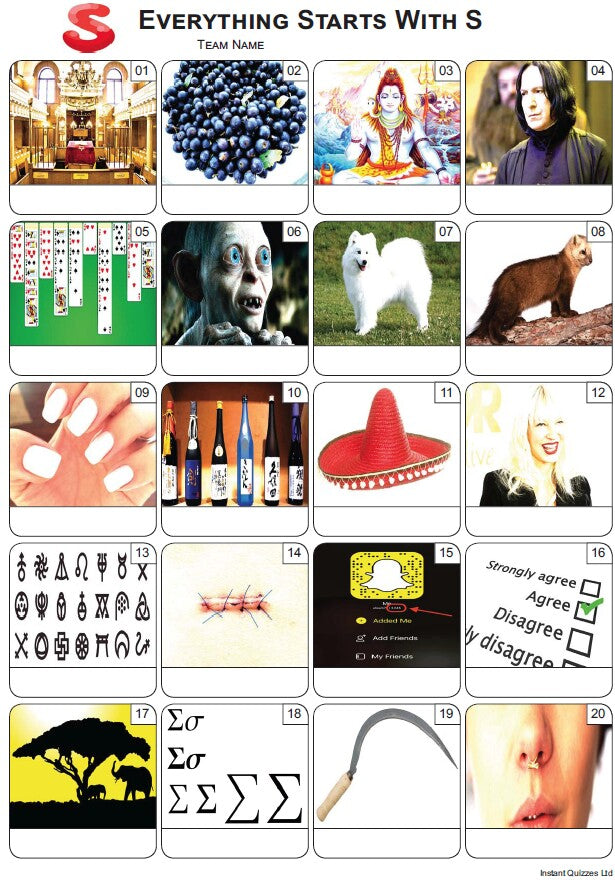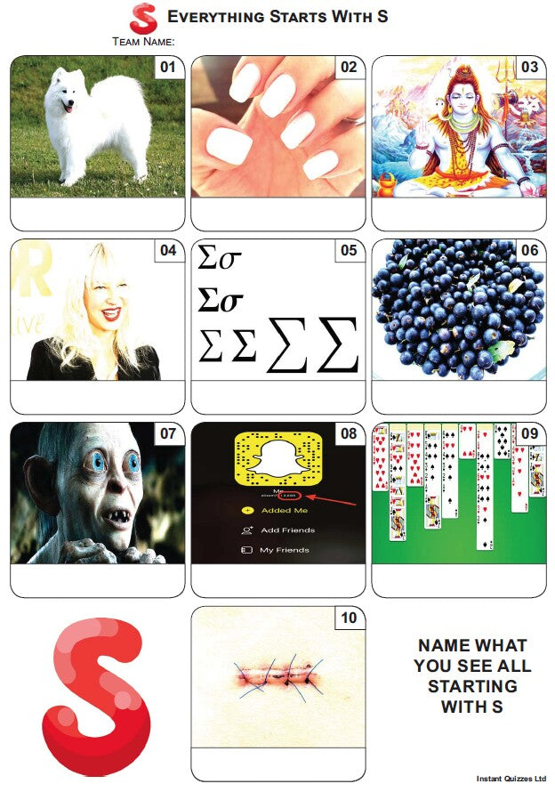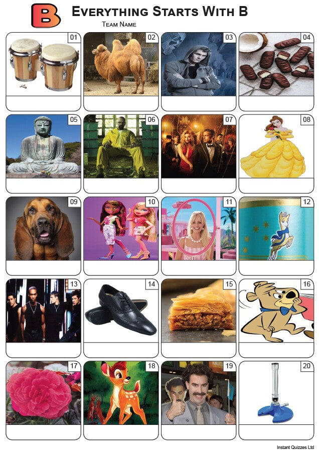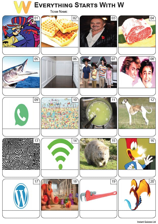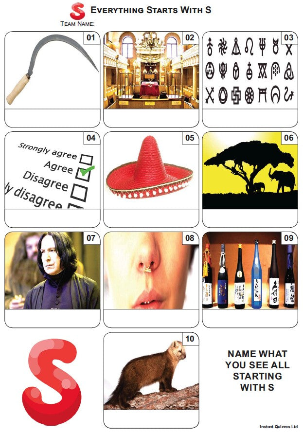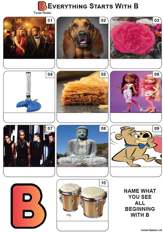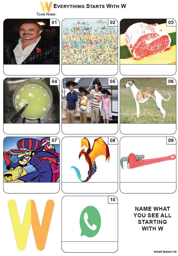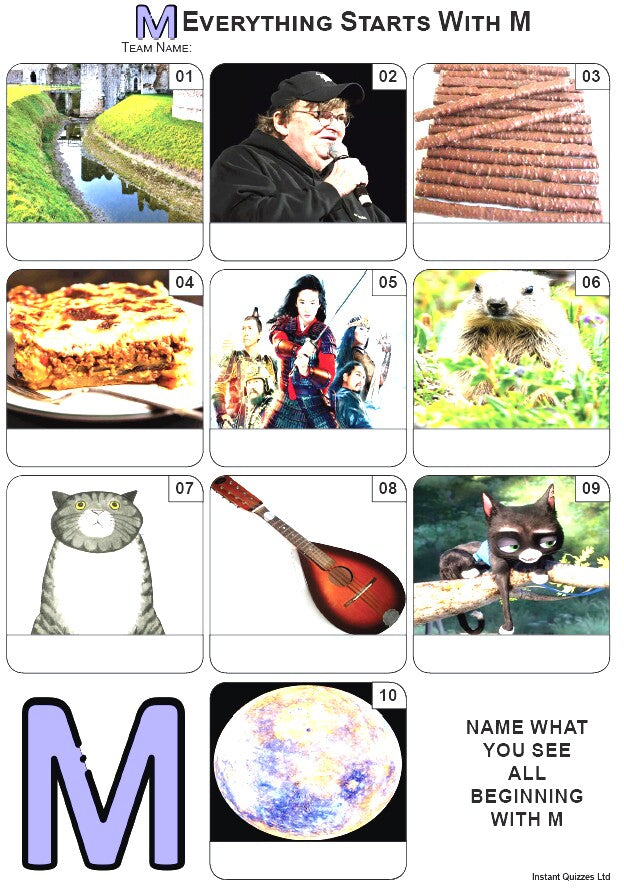 In this mixed bag picture quiz section, every answer begins with the same letter so just pick the letter of the quiz you require and off you go!