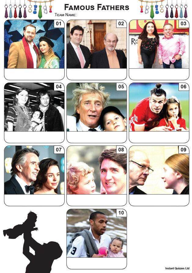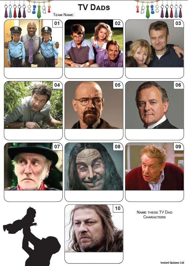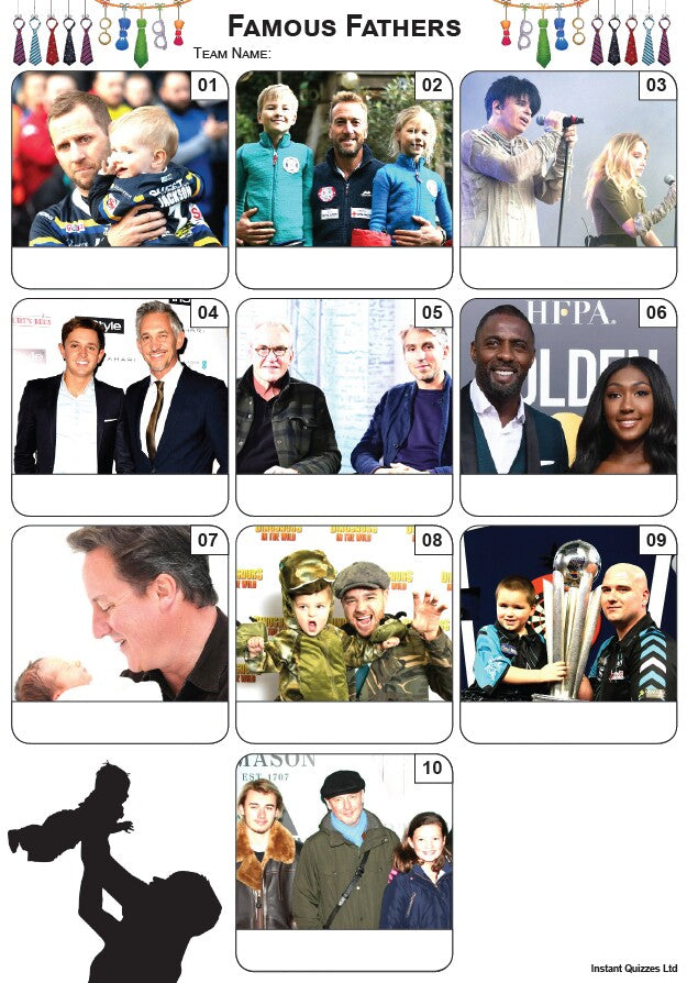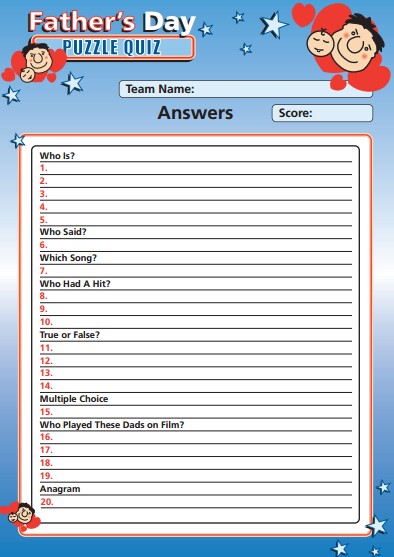 Ideal for a themed Father's day quiz night, or to be used as part of a hotel, office or house Father's day party or festive competition