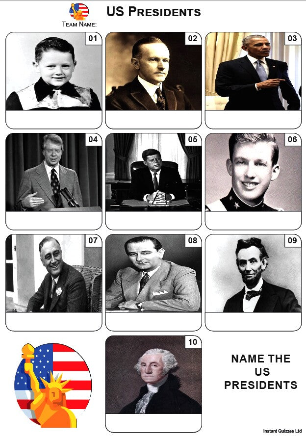 Ideal for an American Indepenedence or Thanksgiving themed quiz night, or to be used as part of a hotel, office or house party or festive competitionĀ