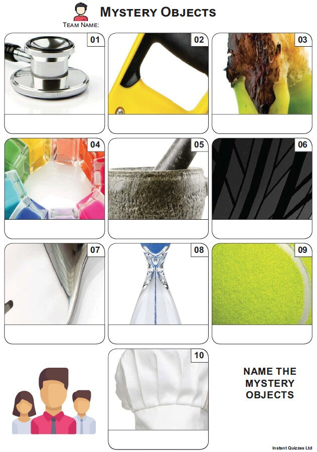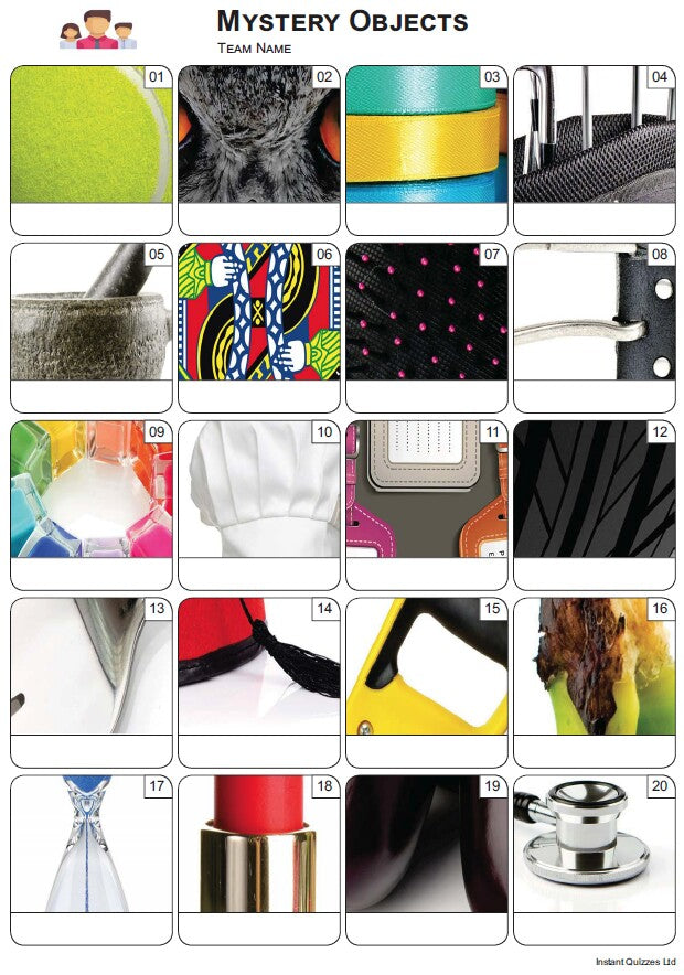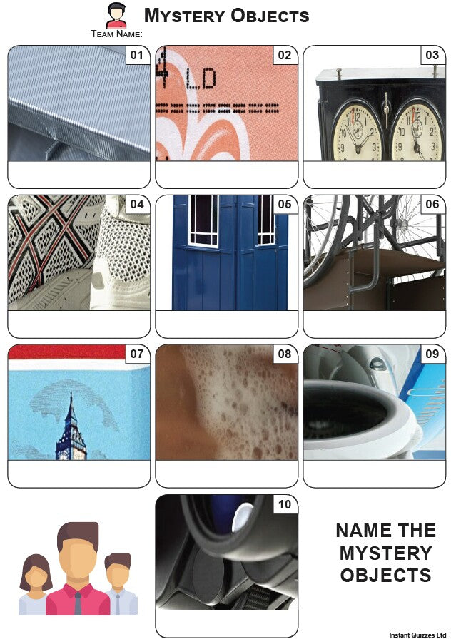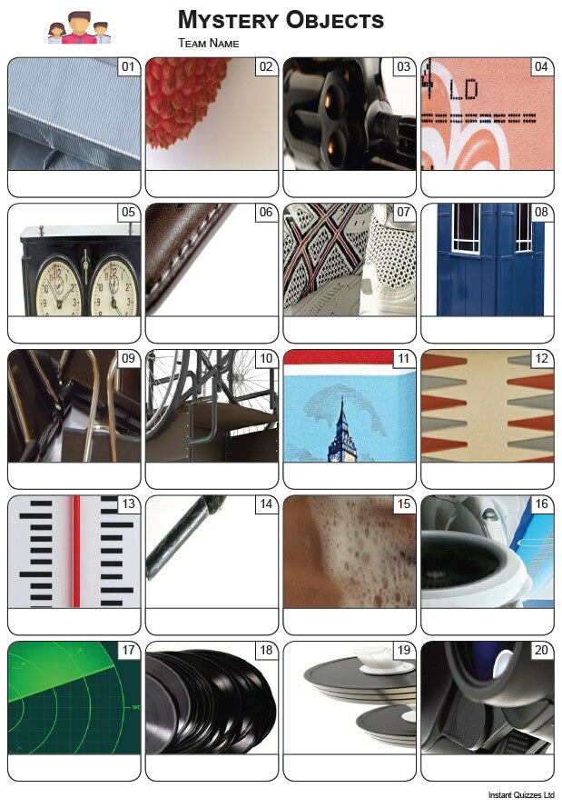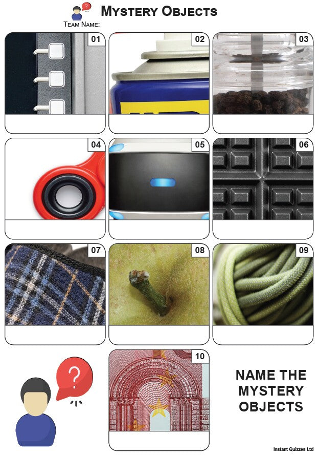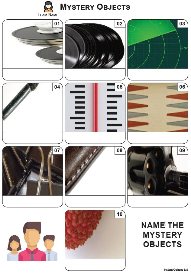 In this mixed bag picture quiz, teams have to guess what the object is from the small section of the picture displayed.
