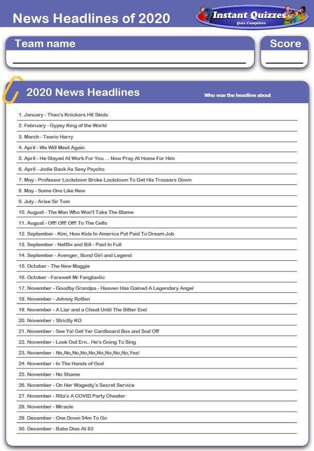 Whether you are looking for a Quiz Pack with everything you need to run a weekly Quiz Night, a Picture Quiz to use as an Interval/Handout round or just the latest Current Affairs rounds - this is the section for you!